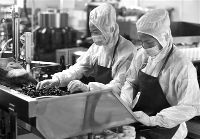 日前,浙江田歌实业有限公司的员工在生产线上加班加点生产便携式食品,以丰富市民菜篮子。