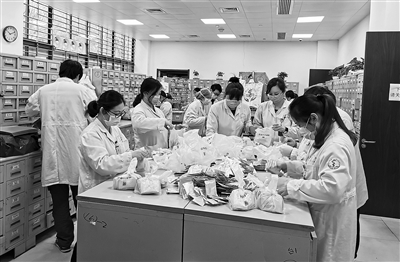 积极应用针对普通人群的“中药预防疫病推荐方”,发扬战时作风,迅速组织调配人员,联系药材供应商家,紧急调配便于携带和服用的中药颗粒剂,供复工单位、广大人民群众预防使用。在应用推荐方的基础上,由该院省新冠肺炎中医药防治专家指导组专家牵头组方,研制出适合上班族使用的防感散和防感烟熏包,内外兼防,有效增强企事业员工抗疫病能力。陆续复工以来,该院共为16家企事业单位提供防感颗粒5.5万余帖,防感散和防感烟熏包1.5万人份。