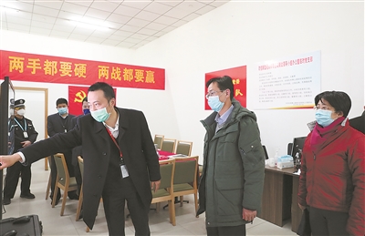 | 在杭州萧山国际机场疫情防控前线指挥部,张才方认真听取工作人员情况介绍。 记者邹伟锋 摄 |