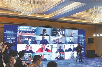 本报讯 通讯员何伊伲、林上军摄影报道 3月25日,在浙江自贸试验区成立三周年即将到来之际,一场“云招商”对接会暨招商引资推进会在舟山举行,并同步在10家网络平台直播。总投资超70亿元的13个项目,通过“屏对屏”“线连线”的方式成功签约,实现疫情期间产业发展“不掉线”,为舟山在“招商突破年”打响了头炮。