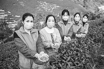 本报讯 记者程雪 通讯员胡慧报道 日前,安吉县溪龙乡女子茶叶专业合作社的白茶基地头茶开采,身穿红马甲的姐妹们分散在茶园里,将一把把芳香四溢的新茶采进腰间茶篓中。