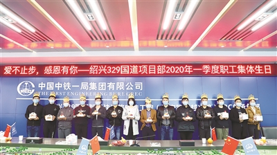戴上寿星皇冠,手捧迷你蛋糕,中铁一局绍兴329国道EPC项目部14位职工日前在项目会议室里,共同度过了一个难忘的生日。