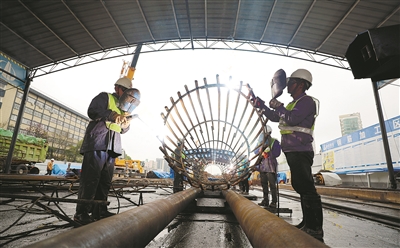 杭州在建地铁工程做好疫情防控工作的同时,建设者加班加点、有序施工,确保完成节点目标。昨日,记者在中天建设集团城市轨道建设公司杭州地铁SG3-6标看到,钢筋笼班组正在焊接重达2.7吨的柱笼,该项目安全部部长畅继鹏介绍,目前工程已完成管线迁改,正在做路面开挖准备。