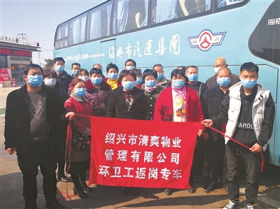 近日,20多名原籍河北邯郸肥乡县的环卫工人,在绍兴市清爽物业管理有限公司组织的返岗专车接送下,顺利抵达绍兴。他们将在公司统一调配下,返岗复工,解决了各项目部清扫人员不足的问题。