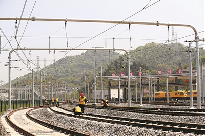 昨日,记者从杭州市地铁集团获悉,地铁16号线计划4月底开通,意味着杭州未来科技城和临安区将迈入轨道交通时代。杭州地铁16号线全长35.12公里,东起余杭绿汀路站,西达临安九州街站;全程设站12座,设计最高时速120公里,单程运行时间约35分钟,是杭州地铁“速度之王”。图为杭州地铁16号线上泉车辆段工作人员正忙着测试站内各项设施。