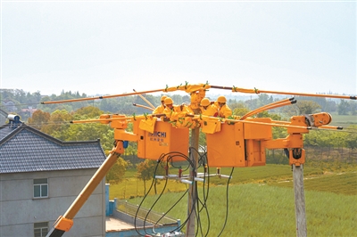 10千伏街道330线是虹星桥镇主干供电线路,长约8.6公里,承担着近千户居民和10家企业的生产生活用电。长兴县供电公司大力服务美丽乡村建设,对该线路实施升级改造,为了保障沿线用户正常用电不受影响,公司决定首次采用最高难度的第四类配网不停电作业方式,进行直线杆改耐张加装柱上开关作业,以进一步提高供电可靠性,并提升电网灵活性,彻底解决故障后分段隔离及运行检修的不便之处。当日,在完成一系列准备工作后,两台绝缘斗臂车缓缓上升至作业区域。斗内作业人员与地面密切配合,历时6个多小时顺利完成此次带电作业。