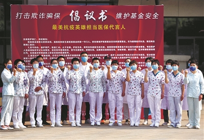近日,刚刚凯旋的武义县援鄂抗疫医疗队20名队员,应聘担任该县医保代言人。队员们接受聘书、郑重签名、现场宣誓,向全县医护同仁倡议,弘扬高尚医德,规范诊疗行为,提升医疗技术,自觉抵制过度检查、过度治疗等违规行为,让群众少花钱看好病,提升医保基金效益,维护医保基金安全。