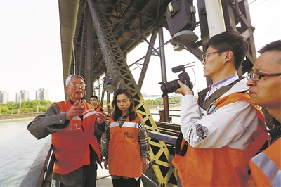 近日,中国铁路上海局集团公司杭州工务段关工委、团委邀请曾在钱塘江大桥工作36年的老桥工高月祥(左一),在茅以升当年为阻止日寇南侵主动炸毁的14号桥墩前,向青工们讲述钱塘江大桥“建桥、炸桥、修桥、养桥”的传奇故事。教育青工传承前辈优良传统,确保铁路运输安全。