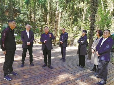 | 张洪国(左三)到职工疗休养基地调研。 通讯员陈怡 摄 |