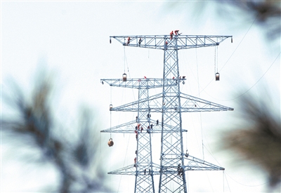 蓝天白云下,铁塔银线间,蒋卫东便是那电网织就的五线谱上移动的音符。日复一日、年复一年,他依然在高塔银线上践行着承诺,播撒着光明。