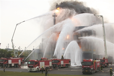 5月18日上午,衢州危化品火灾事故处置综合演练在该市消防培训基地举行。整个活动共分为实战技能操法展示、化工装置火灾实战演练两个部分。衢州市消防救援支队协调应急救援力量117人、应急车辆24辆,市公安、环保、医疗救护、电力、电信、水务、气象等应急联动力量协同参与演练和处置。