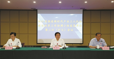 本报讯 记者阮向民报道 浙江省推进新时代产业工人队伍建设改革工作协调小组成员单位第二次(扩大)会议昨天下午在杭召开。会议提出,要把习近平总书记赋予浙江的新使命新要求新期望作为我省产业工人队伍建设改革工作的时代方位和重要遵循,以更高站位、更强担当、更优标准,认真落实“政治上保证、素质上提高、权益上维护、制度上保障”要求,坚持目标导向、问题导向、效果导向,扎实推进各项改革任务落实落地,努力使我省产业工人队伍成为“重要窗口”展示的重要内容。