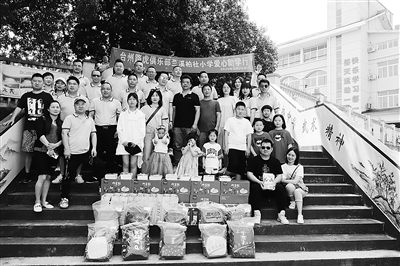 当天上午,该俱乐部盛小林会长等携同俱乐部的虎友们一起,对柏社乡中心小学的10名学生送上书籍、书包、文具等学习用品和饮料等物品。