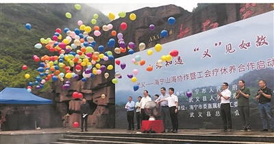 5月14日,借助海宁开展“潮城扶贫购”结对帮扶地区农产品集中展销活动的契机,武义县向当地机关干部和旅行社代表们着重推介了当地的旅游资源,并介绍了两地疗休养专项优惠政策,让海宁市民们心生向往,大呼“给力”。10天之后,由海宁市人民政府、武义县人民政府主办的“山海知遇 ‘义’见如故”武义—海宁山海协作暨工会疗休养合作启动仪式举行,100名海宁机关干部来到武义开启疗休养之旅。
