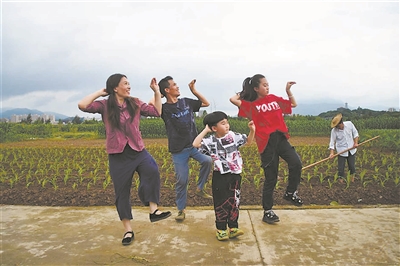 18年前,丈夫范得多曾在一次车祸中受伤,并因惊惧过度患上抑郁症。4年前,妻子彭小英开始带着丈夫一起跳舞,两人在热情的舞蹈中挥洒汗水,范得多的情况出现了明显好转。 现在,彭小英和范得多在抖音账户上共有140余万粉丝。每天晚上,他们直播跳舞,屏幕前漾出的笑容感染着越来越多的人。6月1日,彭小英(左一)和范得多的两个孩子也加入了舞蹈。“有活干,有舞跳,我们现在的生活真的很好!”范得多说。