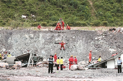 本报讯 记者邹伟锋摄影报道 台风登陆,道路塌方、电力通信中断、人员被困、天然气泄漏……突发群发性地质灾害如何快速应对处置?昨日上午,一场由省应急管理厅、省自然资源厅、湖州市人民政府主办,长兴县人民政府承办的2020年浙江省暨湖州市地质灾害应急演练,在长兴县和平镇狮子山一废弃矿山举行。