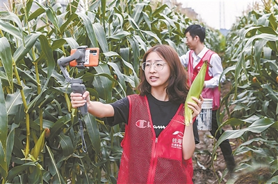 近期,慈溪市钱海军志愿服务中心举办多次爱心助农活动,组织青年志愿者到农村帮助孤寡老人、低保户、残疾农户采收蔬菜、水果并进行义卖。当天,志愿者在田间通过直播展示刚采摘下来的玉米。
