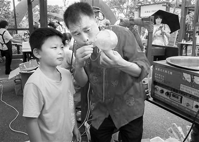 近日,“文化和自然遗产日”衢州市柯城区非遗宣传展示活动在万田乡荷塘村举行。来自万田乡的童大金是柯城吹糖人技艺非物质文化遗产传承人,早早就被小朋友们围住了。只见他拿起一块黏糊糊的糖,经揉、捏、吹,一只形象生动的小老鼠就在他手中诞生了。据他说,这一手吹糖人绝技是爷爷传给他的,如今这门技艺在衢州已经非常少见。此次参加非遗展示,也是为了让更多的人知道吹糖人,将这一非遗技艺更好地传承下去。