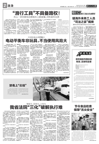 浙江工人日报 法治 00002 “滑行工具”不具备路权! 2020-06-23 2 2020年06月23日 星期二