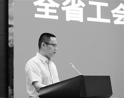 | 省教育工会副主席徐立发言。 记者邹伟锋 摄 |