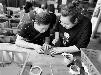 进车间,我们看到一双鞋的制作要经过划料、批皮、打磨、做帮、分楦等几十道大大小小的工序,有些工种的职工一站或者一坐就是一整天,重复的动作、内容,看着简单的工作,做起来可不容易。我们体验了划线员的岗位,具体内容就是在一块皮料上用特定的记号笔画好孔,方便下一个工序定位。一块皮料画好3分钱,一早上我画了220块,转换出来的劳动成果也就只有几元钱。真正理解了工人的艰辛,且行且珍惜,更应该懂得工会人的使命与责任。在车间交流的有云南来企业一年多的阿姨、有本地21岁未婚的姑娘、有刚来企业半个月的小青年,真诚、乐观、向上。短短地交流后,也了解了多数一线职工对能有一份稳定的工作、收入、安全的劳动环境,就能简单知足快乐。
