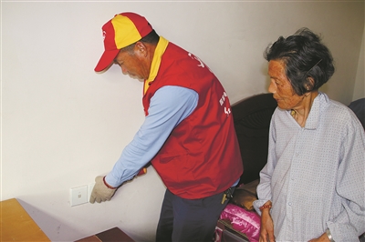 | 帮助留守老人查看电路故障。通讯员刘生国 摄 |
