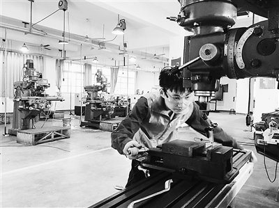 | 2019年中国技能大赛全国机械行业职业技能竞赛工具钳工(机械制造共性基础技术)赛项工业机械装调子赛项学生组一等奖获得者应俊灿同学正在进行铣工训练。 |