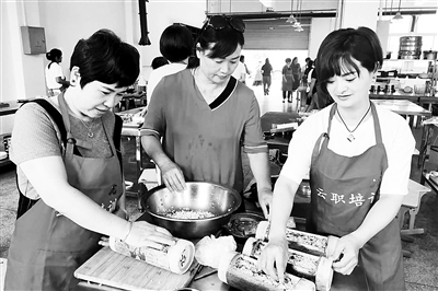 制作课上,授课教师从食材搭配、制作流程、烹饪技巧和注意事项等,多角度进行细致入微地讲解,并进行现场示范。学员们根据制作要求,分别从色、香、味、型等感观环节入手,体验美食制作过程,享受制作乐趣。在学员们巧手制作下,一段段竹香扑鼻的竹筒饭,一只只酥脆可口的油筒饼,一块块晶莹剔透的千层糕,一份份嫩滑爽口的豆腐脑出炉,香气四溢,香飘十里。