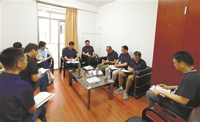 | 参加第二期“当一周工人、体工会初心”活动的第一组工会干部召开学习会。记者邹伟锋 摄 |