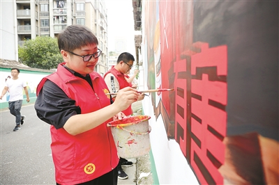 昨日上午,桐庐县凤川街道凤栖社区党员志愿者,在居民区创作垃圾分类创意墙绘,让原本破旧的墙体成为了一道亮丽的风景线。通讯员徐军勇 摄