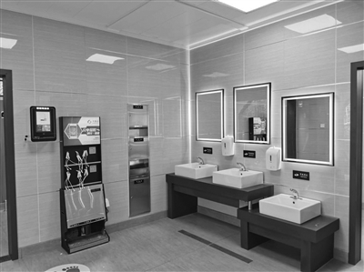 此外,北高峰生态公厕十分注重用户的使用体验。便池和蹲位运用感应+新风系统+自动式一体水箱,从根本上解决使用者忘记冲洗、空气氨味重等“老生常谈”问题。