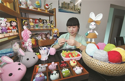 近日,彭柱燕正在租住的房子里编织毛衣卡通玩偶。今年35岁的彭柱燕老家四川宜宾,他们一家在台州市路桥已经生活10多年了,丈夫在一家公司工作,孩子正在读初中。彭柱燕很有耐心,爱做精细活,从小就喜欢手工编织。当上妈妈后,因为要带孩子,彭柱燕就发挥自己的爱好和特长,在家里编织玩偶在网上进行销售。彭柱燕的网店风生水起,玩偶很受青睐,除了国内客户,远在日本、新加坡、马来西亚等海外商家也纷纷向她投来订单。
