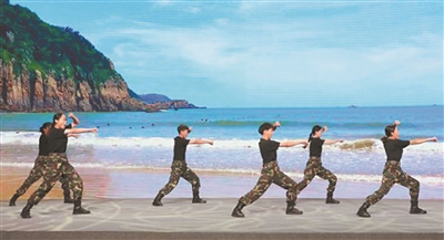 | 图为“洞头先锋女子民兵连”代表现场演示操练。 |