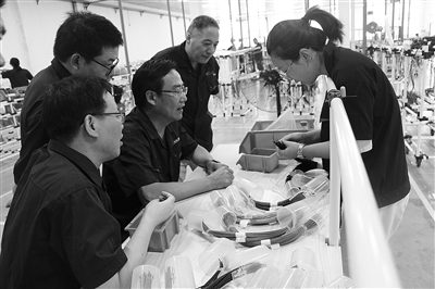 穿防水栓的工作看起来简单重复,做起来却也不容易。眼、手、脚需要协调同步,不但考验专注度,还要细心,要确认端子与切断卡是否一致、线材是否不良、固定是否得当。一开始,大家都有些不得要领,经过车间员工的耐心教导,最终越做越熟练。