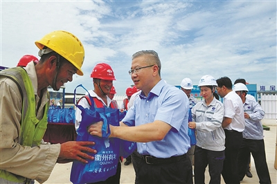 8月7日,衢州市委书记徐文光看望慰问高温下坚守工作岗位的交警、环卫工人、项目施工人员和综合行政执法人员等一线工作者,为他们送去防暑降温用品,并代表市委、市政府向全市奋战在高温一线的劳动者表示慰问和感谢。