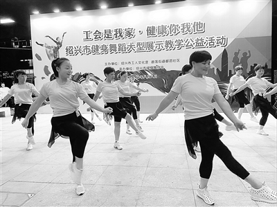 本报讯 通讯员俞祝琴报道 欢快活力的舞姿、俏皮灵动的步伐、活力四射的音乐……日前,绍兴市总工会“双百引领”计划中的一项“重量级”活动——“工会是我家·健康你我他”绍兴市健身舞蹈大型展示教学公益活动,在绍兴迪荡世贸健身广场拉开了帷幕。在三伏天的高温下,全市30支排舞团队的300余名健身舞蹈爱好者旋转跳跃不停歇,个个满面春风、精神抖擞,仿佛“上紧了发条”。据悉,绍兴市工人文化宫、迪荡街道将在都泗社区健身文化广场设立全市健身舞蹈爱好者沙龙场外基地,促进机关企事业单位与街道、社区的紧密联系,实现硬件、软件资源共建共享,让全民“健身热”一直热下去。