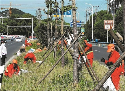 连日来,气温居高不下,绍兴市越城区公路管理所的绿化养护工们顶着烈日坚守在作业一线,汗水湿透了衣服,忙碌的身影成为杨绍线上一道最美风景。