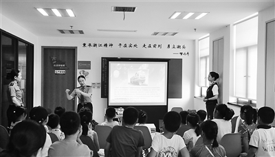 | 全国劳模陈美芳为爱心暑托班小朋友讲解铁路安全知识。 |