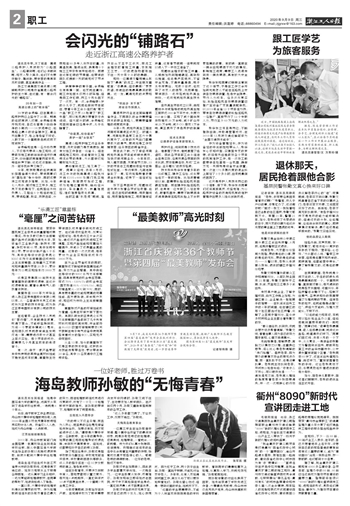 “我的师父不仅业务强,而且为人热心,把宝贵的经验毫无保留地传授给我。如果没有她,我不可能进步这么快。”谭思是六横中学的一名新教师。在今年的高考中,她带的高三班因地理考试成绩优异,受到校方高度肯定。但她说,这都要归功于自己的师父孙敏。