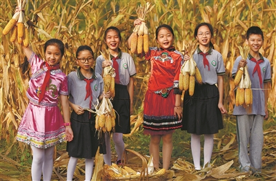 9月9日,位干武义县宣莲之乡的柳城小学开展了“庆丰收、迎国庆”主题活动。莲乡伢儿通过采莲、剥莲、摘猕猴桃、掰玉米和制作创意果蔬拼盘,体验劳动艰辛,感受丰收喜悦,表达对祖国的美好祝福。