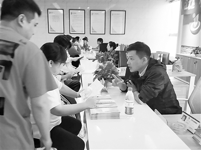 | 江北区总工会工作人员现场受理职工投诉。 |