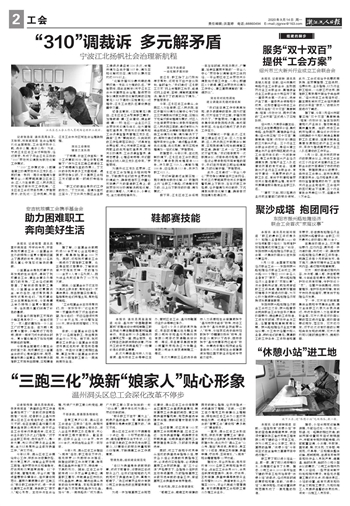 记者张浩呈 通讯员周永卫、王际明、何族斌报道 社会治理现代化全面起航,工会组织扬什么帆,选什么楫,造什么舟?为此,宁波江北区总工会对照航标,经过探索,形成了符合江北实际的“310”劳动关系调裁诉联动化解工作模式。
