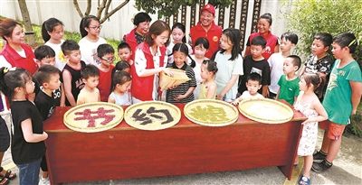 “节约粮食,从我做起。”日前,温岭市新河镇总工会、团委、妇联和党员服务中心的志愿者,选择了大米、黑米、赤豆、绿豆等让小朋友辨认,并拼出“节约粮食”字样,让孩子们明白“谁知盘中餐、粒粒皆辛苦”的道理,从小树立爱粮、惜粮、节粮意识。通讯员林绍禹 摄