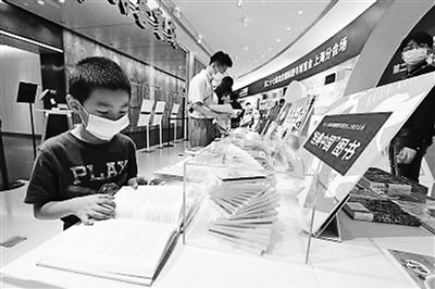| 北京国际图书博览会上海朵云书院分会场,一名儿童正在翻阅展出的图书。 |