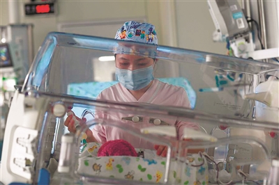 浙江大学医学院附属儿童医院新生儿重症监护室设有监护床位50张,收治的大部分是早产儿。由于母婴隔离,这些特殊的宝宝只能由医护人员照顾。他们实行三班轮换,日夜进行综合性监护与“鸟巢式”护理,用爱履行着“临时妈妈”的责任。