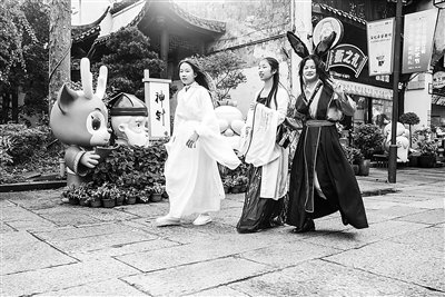 近日,衢州市区水亭街历史文化街区,三名cosplay(角色扮演)的女孩,用快闪形式展示风采。