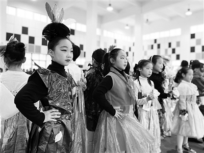 现场,各个年级的“小模特”身着用塑料袋、旧报纸、旧光碟等废旧物品制作而成的“环保时装”,踩着节拍,自豪地走在小小的舞台上,充分彰显环保理念,博得了观众们一阵又一阵热烈的掌声。其中,四年级的邱慧仪全身上下的装扮均由黑色塑料袋加以塑料宝石点缀制成,获得一致好评,她说,在我的眼中,环保才是真的时尚。