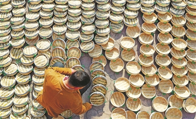 昨日,在台州市仙居县白塔镇一蒸笼加工作坊,农民正在制作蒸笼。据介绍,该作坊有从业人员12人,产品采用订单加工,网上销售,供不应求,年销售量在200万元以上。近年来,仙居县利用丰富的毛竹资源,引导农民发展竹编产业,加工制作蒸笼、竹筷、竹编等竹制品,让当地农民在家门口增收致富。