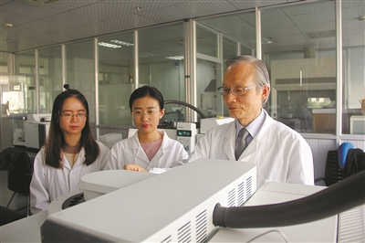 | 周小靖(右)带队研发分析仪器。 |