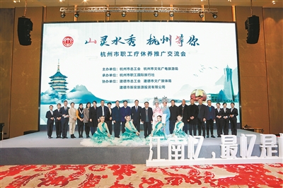 那么,来杭州疗休养,有哪些好去处?推介会上,杭州市职工国际旅行社金牌导游团发布了杭州市职工疗休养精品线路,带领大家感受杭州的独特韵味和别样精彩。其中,“最忆杭州、逐梦下姜”疗休养精品线路备受关注,这也是夺得浙江省职工疗休养产品设计大赛第一名的线路。该线路融汇了三大世界文化遗产,不仅能在良渚古城遗址感受灿若星河的五千年文明史;还能在大运河畔与非遗大师零距离接触,体会大国工匠精神;不仅能在西湖的湖光山色之中品读诗画江南;还能在“梦开始的地方”解读美丽乡村的密码……